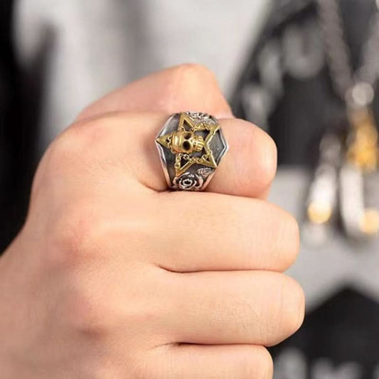 Punk Skull & Star Ring for Men – Retro Gothic Zinc Alloy Jewelry - Antique Silver