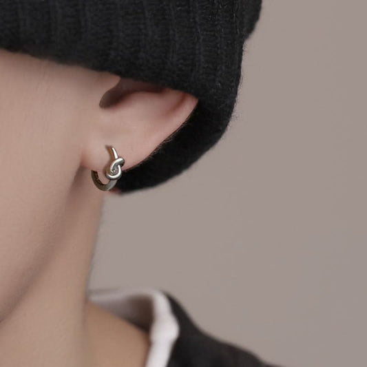 Men’s Twin Knot Hoop Earrings – Trendy Geometric Fashion Jewelry - Silver