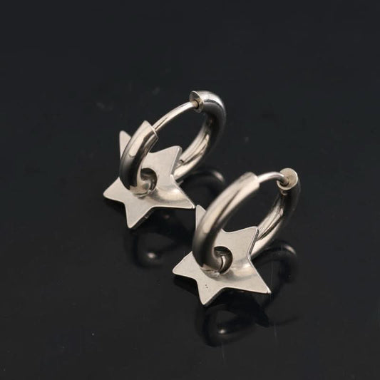 Men’s Titanium Steel Star Hoop Earrings – Trendy Unisex Jewelry - Silver