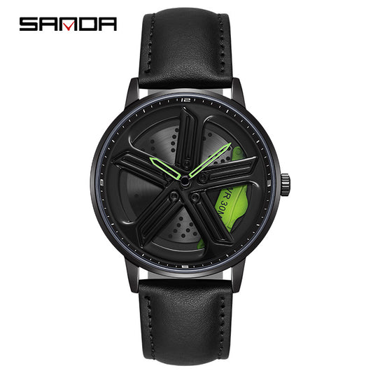 Sanda Men’s Quartz Watch – Wheel Dial, Stainless Steel Strap, Waterproof Sport Timepiece - Black Green