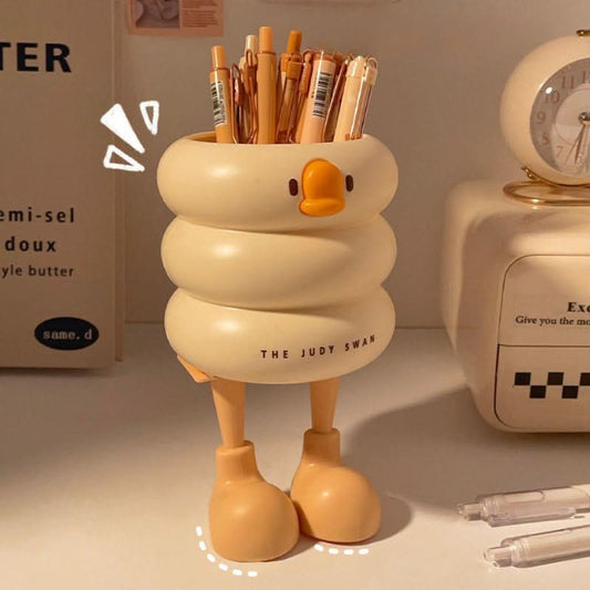 Duck-Shaped Plastic Pen and Brush Holder - Yellow