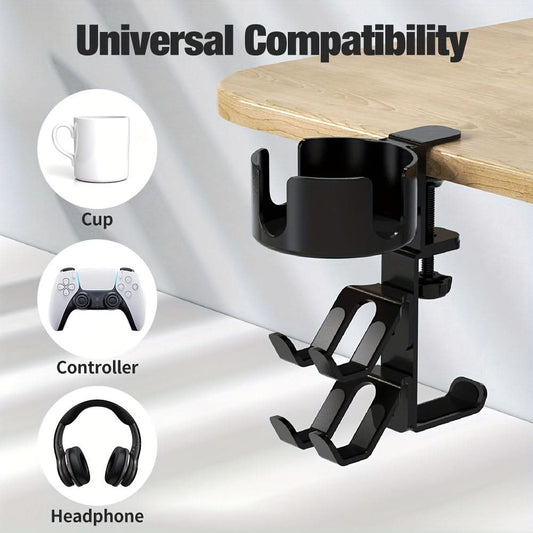 3-in-1 Under Desk Clamp Headphone Stand - Black