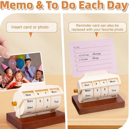 Stay organized and add a vintage charm to your workspace with this wooden desktop calendar. Featuring a rotating block design, this creative daily planner combines functionality and style, making it a standout desk accessory. The calendar comes with a memo pad and a wipe-clean...- ₹ 1,549