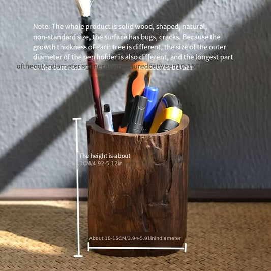 Solid Wood Retro Pen Holder, Desktop Organizer - Dark Brown