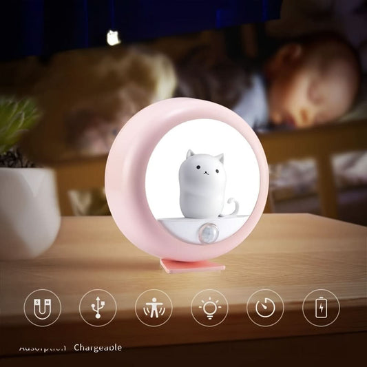 Kawaii Cat-Shaped Foldable Desk Lamp, Dimmable - Pink