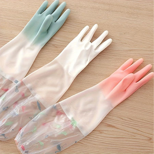 Reusable Long-Sleeve Waterproof Cleaning Gloves - 3 Pairs (green + White + Pink)