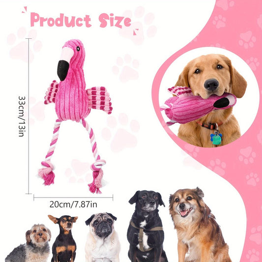 2-Pack Flamingo Plush Dog Toys-Squeaky Teething & Interactive Rope Toys