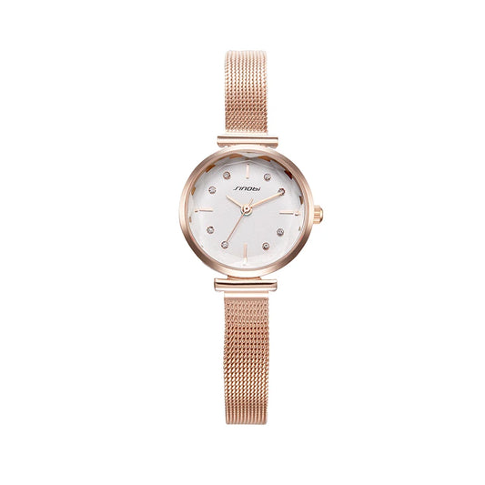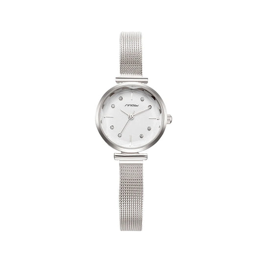 SINOBI Women's Stainless Steel Waterproof Quartz Watch – Slim Dial Luxury Timepiece - Silver