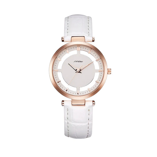 SINOBI Women's Waterproof Quartz Watch – Business Casual Alloy Case Leather Strap - White