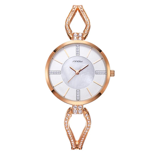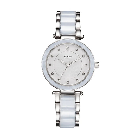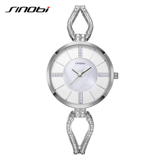 SINOBI Stainless Steel Women's Waterproof Watch – Luxury Quartz Fashion Timepiece - Silver