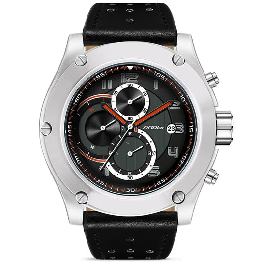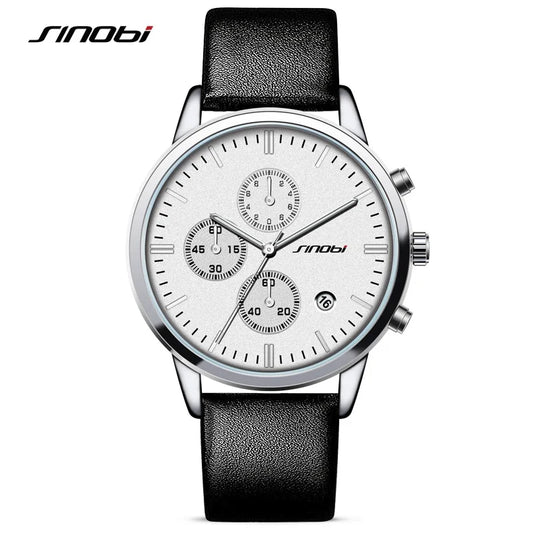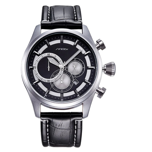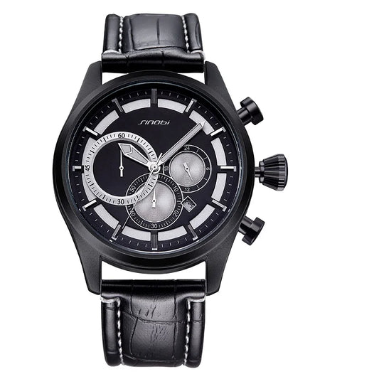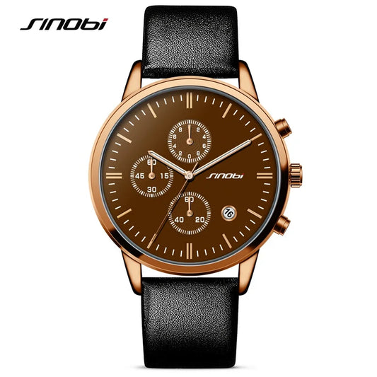 SINOBI Men's Leather Quartz Watch – Waterproof Business Casual Timepiece - Black