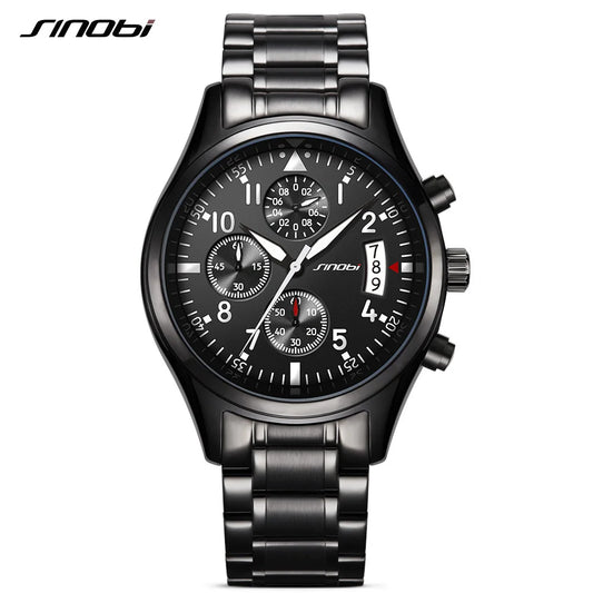 SINOBI Men's Black Stainless Steel Quartz Watch – Chronograph, 41mm Minimalist Design - Black