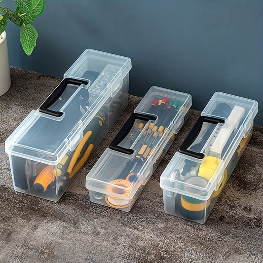 Transparent Plastic Portable Tool Storage Box - Black