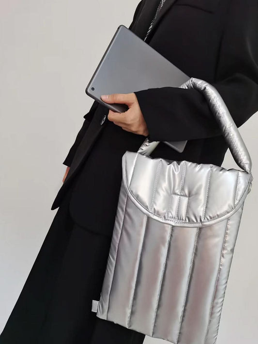 Korean Checkered Quilted Shockproof Laptop Sleeve - Silver