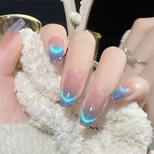 24pcs Aurora Blue Gradient Press-On Nails - BLUE