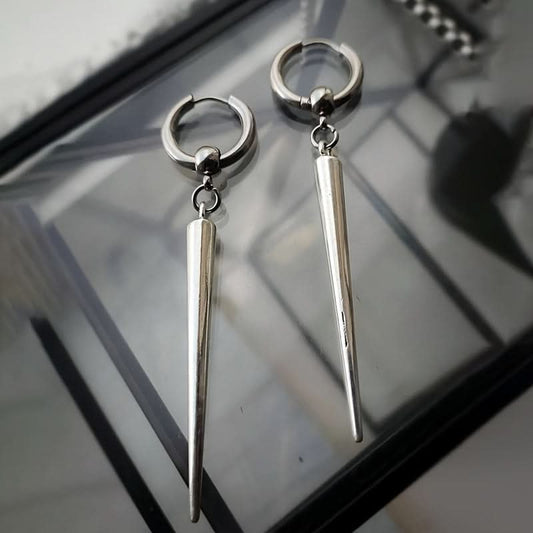 2Pair Silver Punk Rock Long Dangle Earrings - Silver