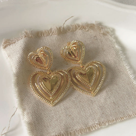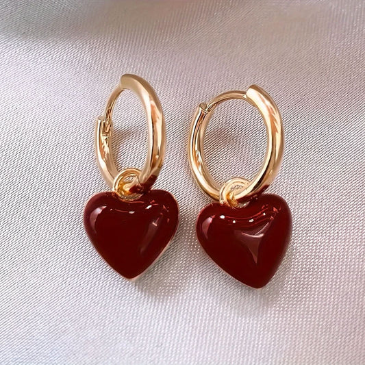 Vintage Elegance Copper Heart Drop Earrings - Polychrome