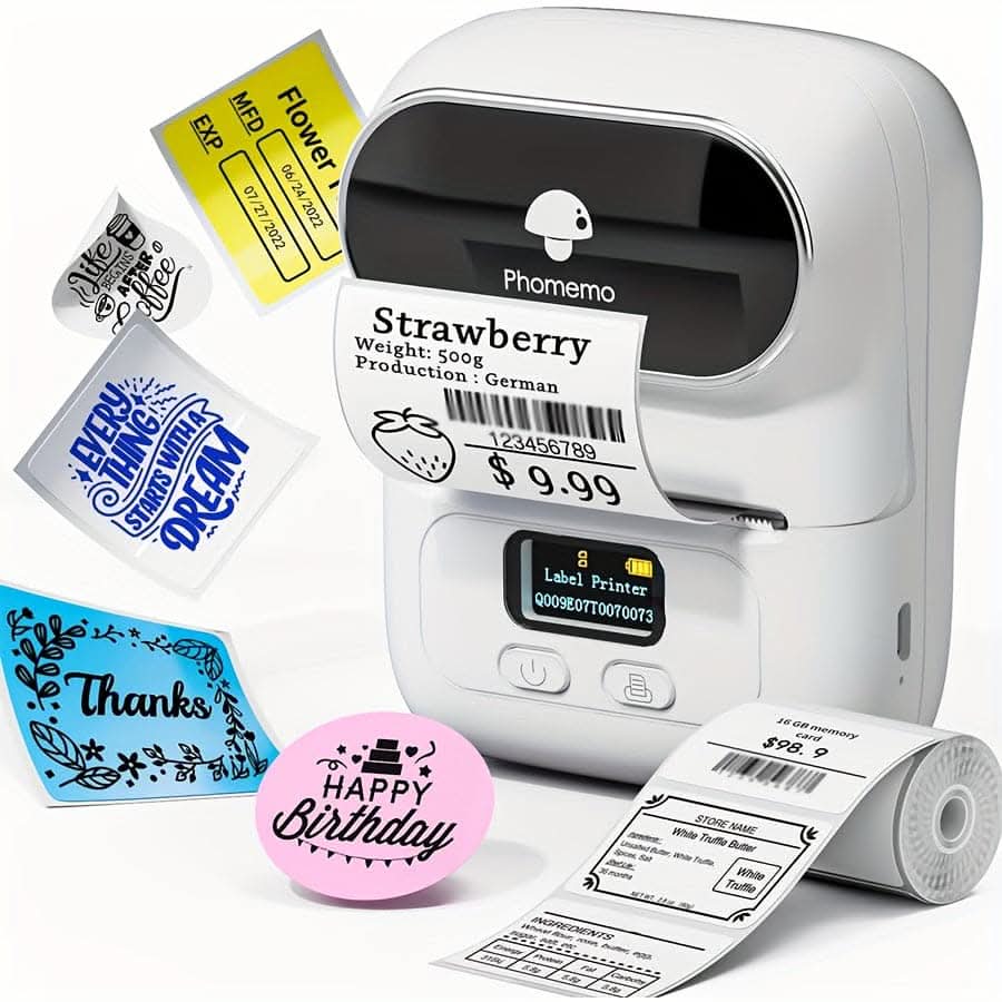 Streamline your labeling tasks with the PHOMEMO Compact Wireless Thermal Label Printer. This portable printer is designed for effortless, versatile printing of barcodes, clothing labels, jewelry tags, and more. Compatible with both Android and iOS devices, you can print directly from your smartphone or tablet, making it perfect for retail, mailing, or personal use. Its space-saving design fits easily into any workspace, while the rechargeable lithium battery ensures you stay powered up on the go. With thermal printing technology, enjoy high-quality, single-color labels without the need for ink. Whether you're organizing your home or managing a business, this mini label printer makes labeling fast and efficient. Upgrade your labeling game today with this essential tool!