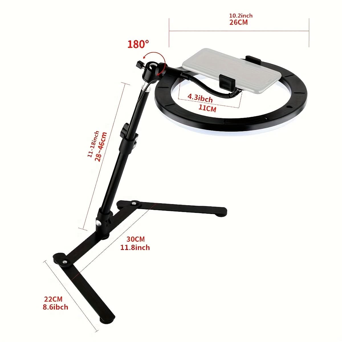 Capture flawless selfies and stunning videos with our 10-Inch Dimmable LED Ring Light, designed for content creators and beauty enthusiasts alike. This versatile ring light features ultimate brightness control, allowing you to adjust the lighting to achieve the perfect glow for makeup artistry, vlogging, or live streaming. The included phone holder ensures your device is securely positioned for hands-free shooting, while the adjustable tripod stand provides stability and flexibility for various shooting angles. USB powered for convenience, this ring light is easy to set up and compatible with most devices. Whether you're a professional photographer or just starting your content creation journey, this LED ring light is an essential tool to enhance your visual quality and elevate your online presence!