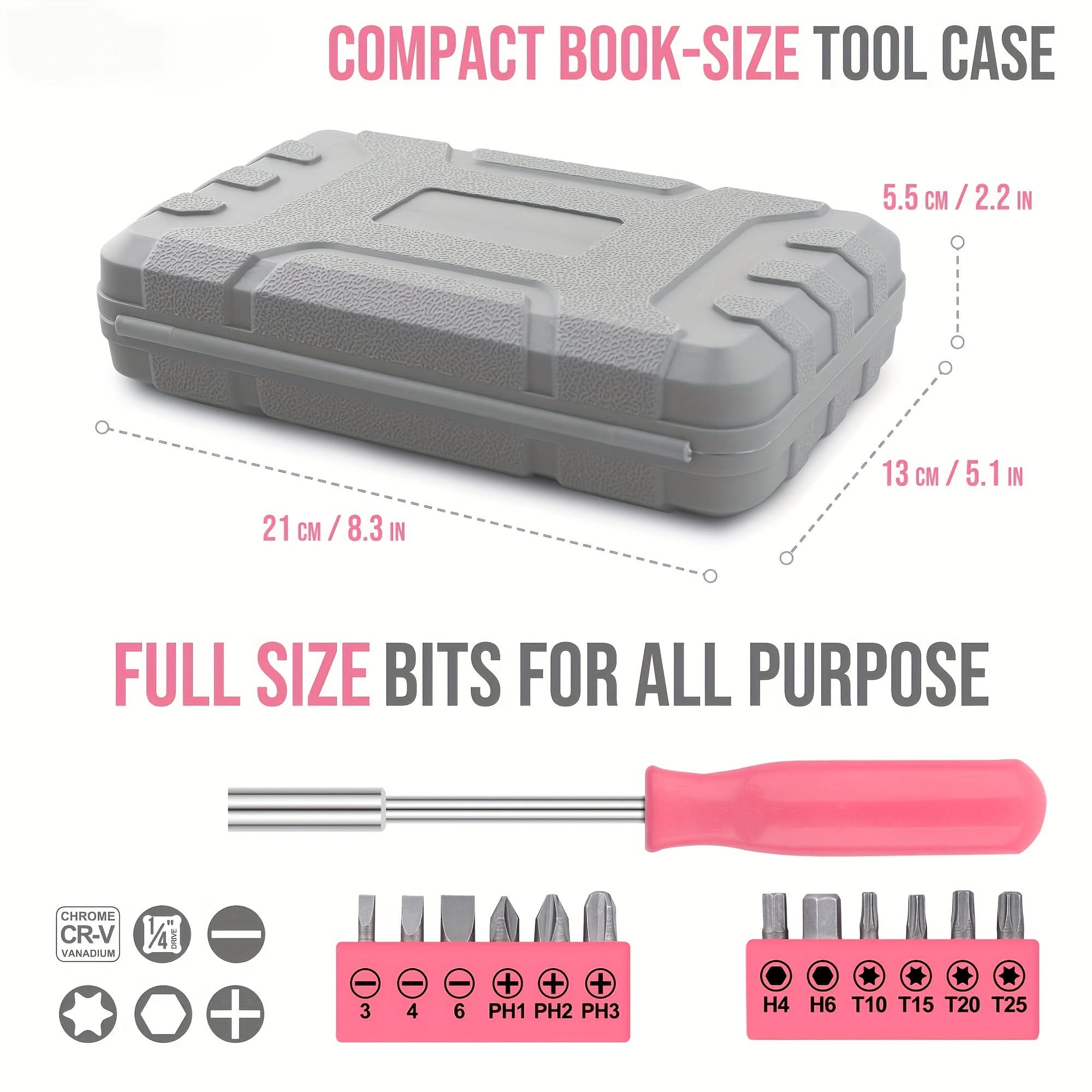 Perfect for beginners and experienced DIY enthusiasts, the tools are neatly organized in a compact, lightweight case for easy storage and portability. The charming pink design adds a touch of personality, making it a thoughtful gift for new homeowners or anyone looking to upgrade their toolkit.