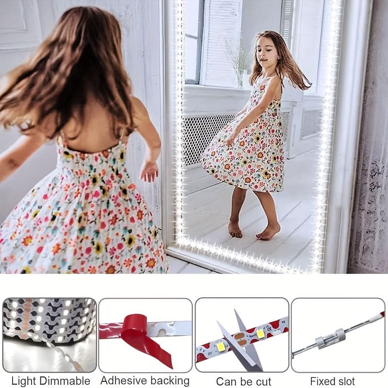 Elevate your beauty routine with our 13ft LED Vanity Mirror Light Kit, designed for ultimate flexibility and convenience. This bendable strip light can be easily adjusted to fit any mirror or coat room setup without the need for cutting, making it perfect for personalized lighting. The included dimmer allows you to customize the brightness to achieve the ideal ambiance for makeup application or grooming. With a modern design and plug-powered convenience, this versatile lighting solution is perfect for dry locations, ensuring a stylish and functional addition to your vanity. Whether you're getting ready for a night out or simply enhancing your daily routine, this LED light kit provides the perfect illumination to help you look your best. Transform your space and enjoy salon-quality lighting at home!