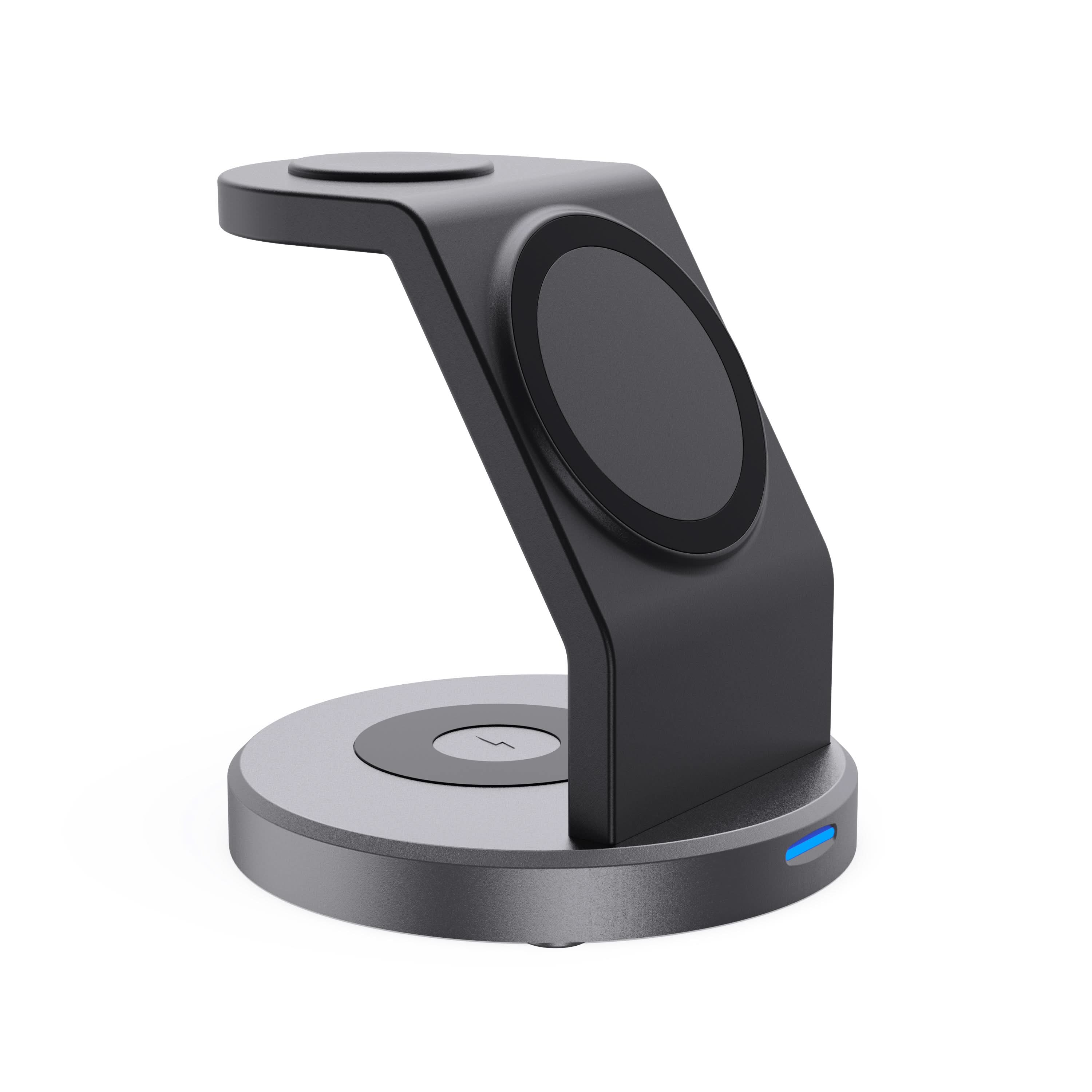 Upgrade your charging routine with this 15W Magnetic 3-in-1 Wireless Charging Station, designed for iPhone, AirPods, and iWatch. Featuring fast charging and magnetic alignment, it provides a secure, efficient power-up every time. The USB Type-C dock ensures stable connectivity, while overheat protection and an anti-slip base keep your devices safe. Whether placed on your desk or nightstand, this sleek station is perfect for keeping your essential devices charged and organized without the hassle of multiple cables. Compatible with most iPhone models, AirPods, and iWatch series, it’s a convenient, space-saving addition to any tech setup. Enjoy faster, tangle-free charging and stay powered up with ease.