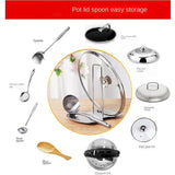 Optimize your kitchen with this large capacity stainless steel pot lid rack. Featuring a removable shelf, drain tray, and free-punching soup spoon rack, it offers a durable, space-saving solution for easy pot cover organization and dishware storage.