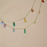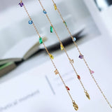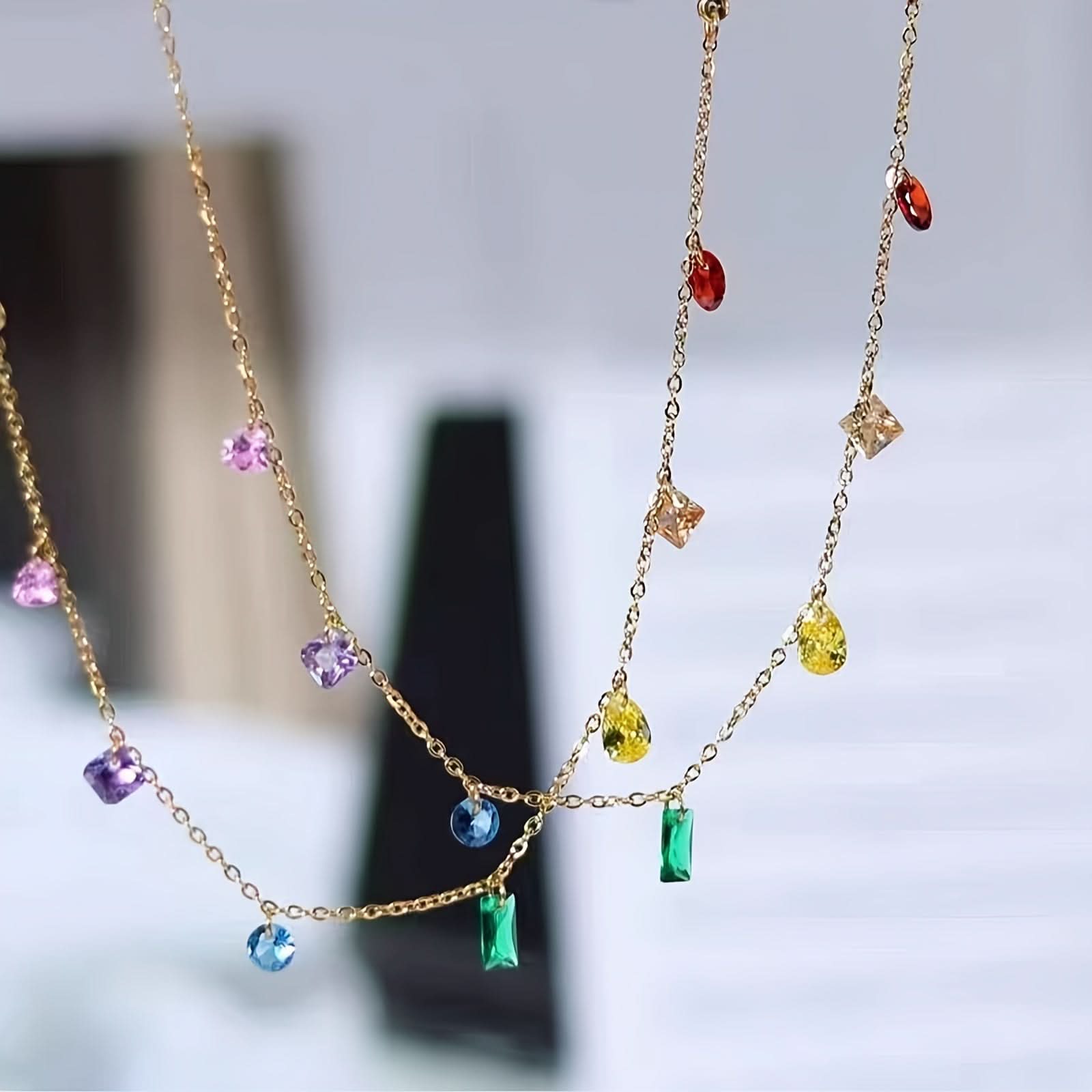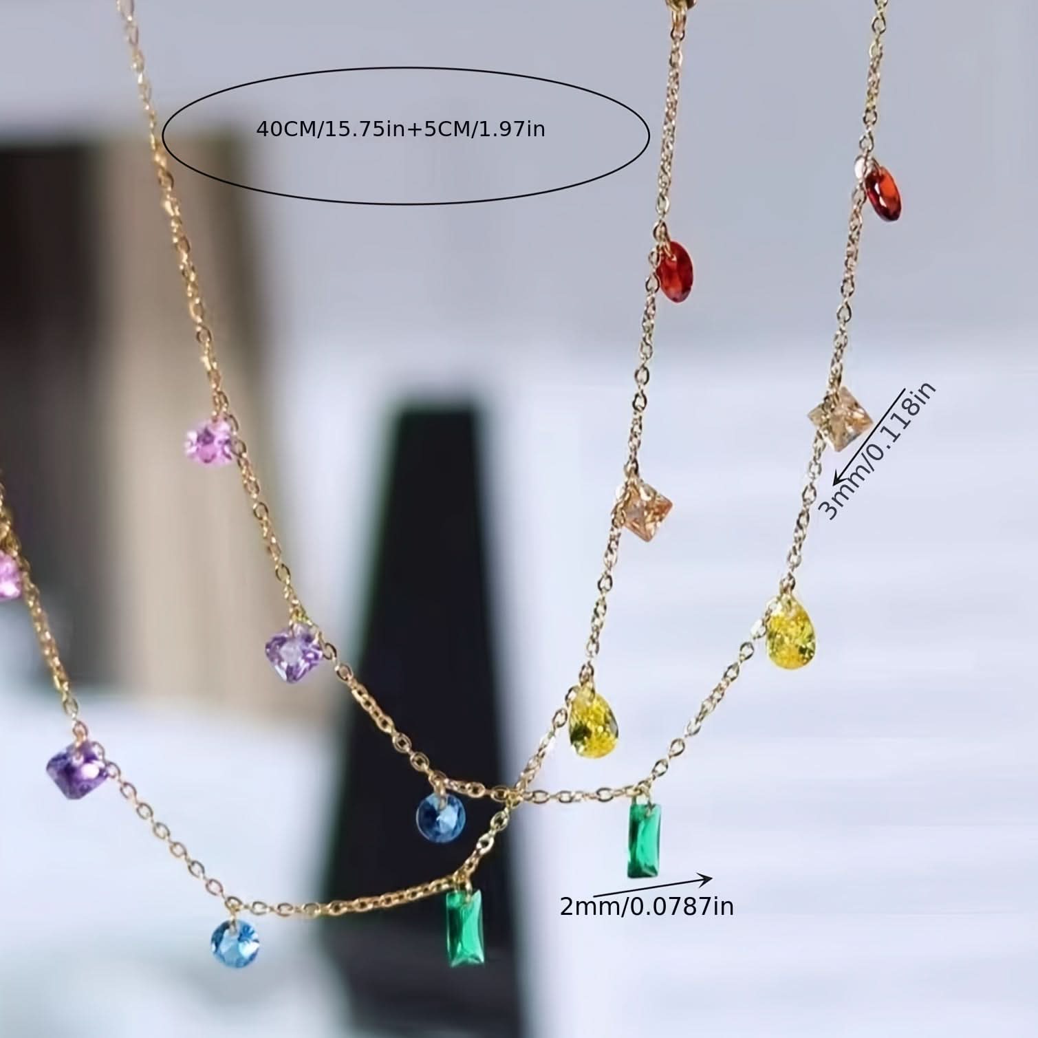 Embrace French romantic elegance with this dainty stainless steel charm necklace, featuring multicolor cubic zirconia in a rainbow design. Its simple, trendy style is perfect for everyday casual wear or party occasions, offering a versatile and retro touch to any outfit.