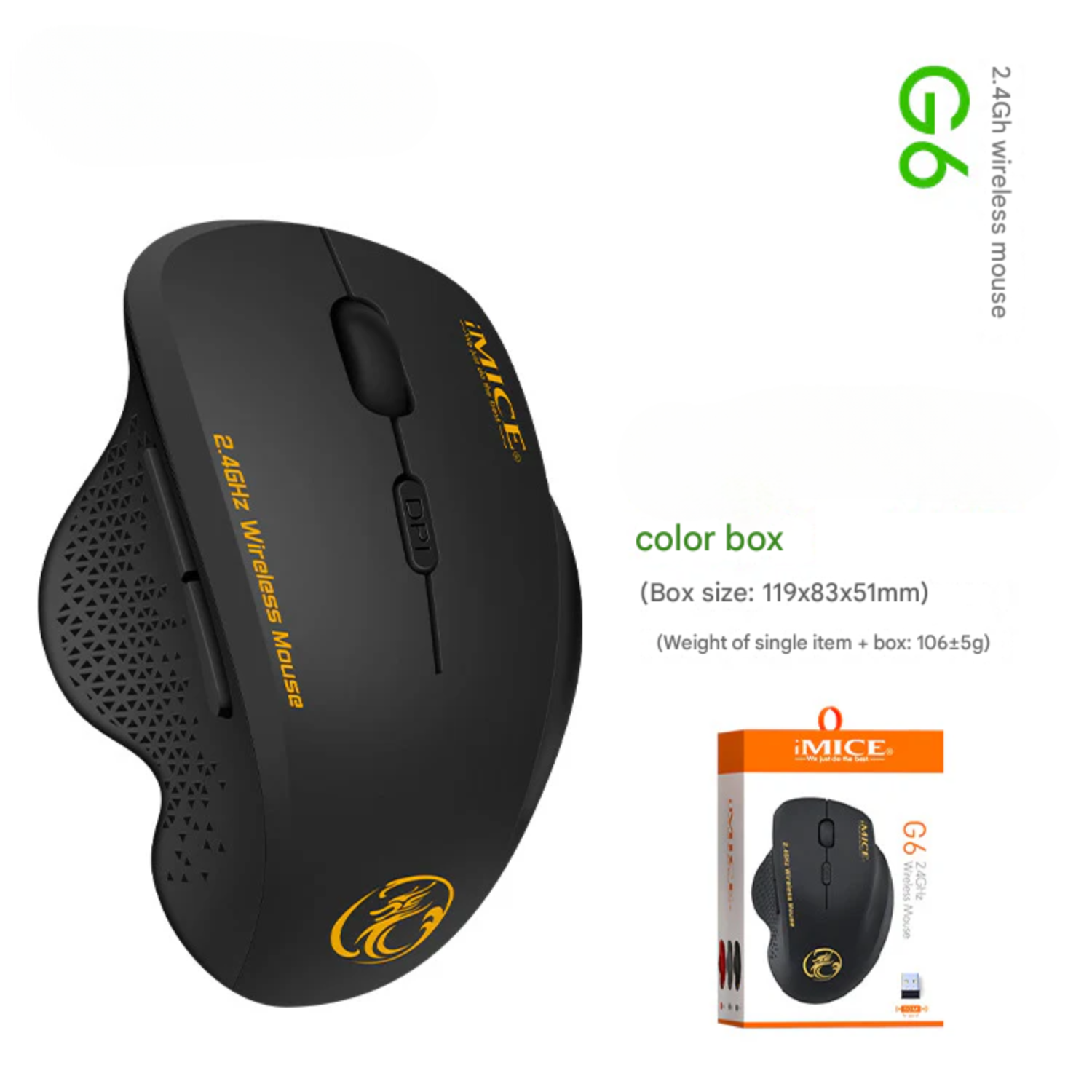 Boost your productivity and comfort with this 2.4G wireless ergonomic mouse, designed for both office tasks and casual gaming. Featuring 6 responsive buttons, a four-way scroll wheel, and adjustable DPI settings (800/1200/1600), it allows precise control for any workflow or playstyle. The ergonomic shape fits comfortably in your hand, reducing fatigue during long hours of use, while its compact design (113×80×48mm) makes it perfect for desktop setups.