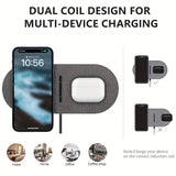 Streamline your charging setup with the 2-in-1 Dual Wireless Charger Pad. Designed for fast and efficient charging, this wireless charging station is compatible with a wide range of devices, including iPhone 15/14/13/12/11 Series, AirPods, Samsung Galaxy S23/S22/S21, and more. With Qi-certification, it delivers reliable and safe charging for multiple devices at once, eliminating the need for multiple cables and chargers. Its sleek, compact design fits seamlessly on your desk or nightstand, keeping your space organized and clutter-free. Enjoy fast charging for your iPhone, AirPods, and Samsung devices all in one spot. Upgrade to this versatile and energy-efficient charging pad for a more convenient and effective charging experience.