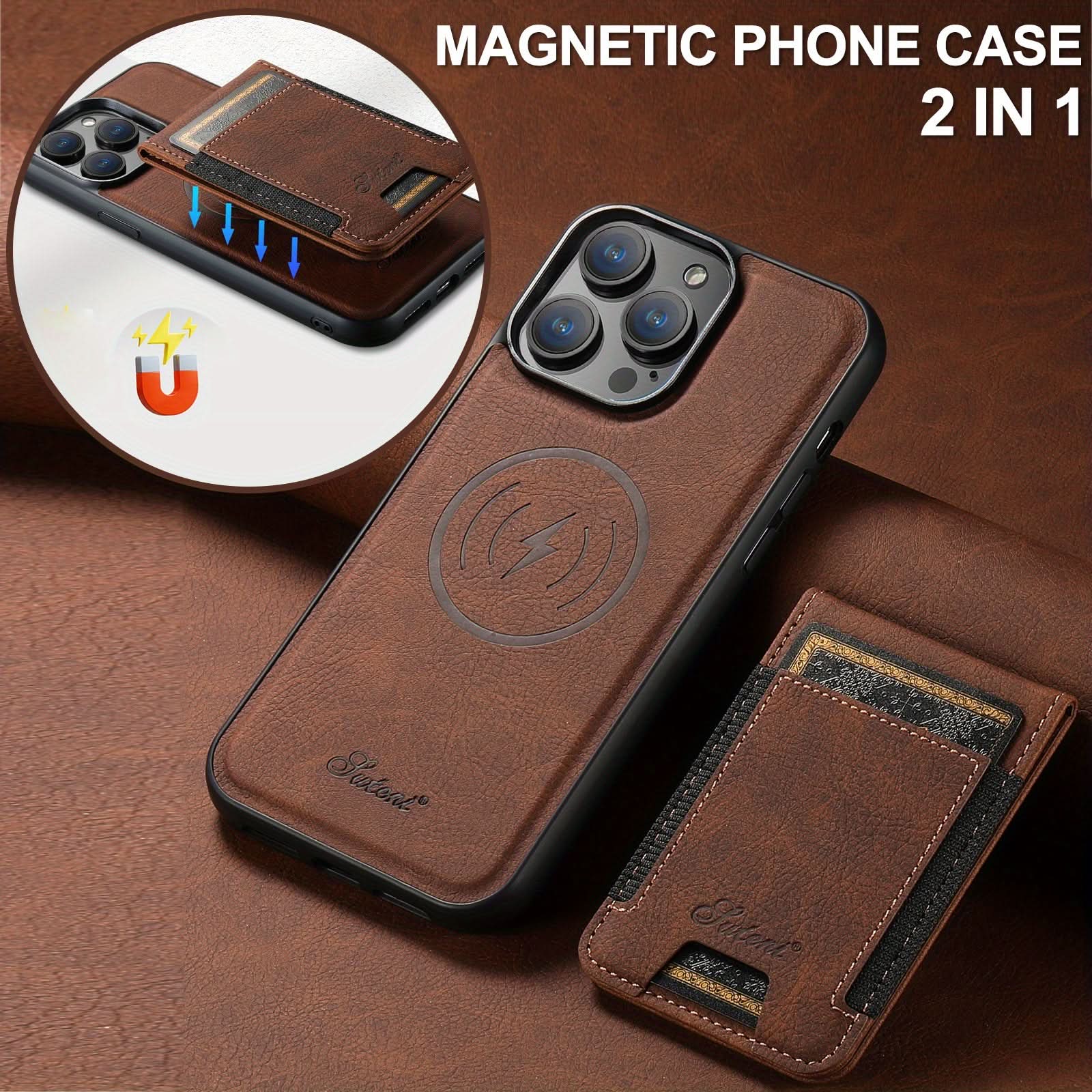Upgrade your phone experience with this 2-in-1 magnetic luxury phone case with a wallet. Crafted from premium faux leather in a retro-inspired design, this case combines timeless style with modern functionality. The detachable magnetic wallet securely holds your cards and cash, while allowing for quick access when needed. Designed for convenience, it supports wireless charging without removing the case, ensuring uninterrupted power for your device. The built-in holder doubles as a kickstand for hands-free viewing, perfect for video calls or streaming. Lightweight yet durable, this case provides excellent drop protection, keeping your phone safe from everyday bumps and scratches. Perfect for those who value practicality and sophistication in one sleek accessory.