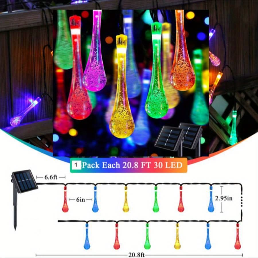 Transform your outdoor space with these enchanting 21Ft solar water drop fairy lights. Featuring 30 vibrant multicolor LEDs, these battery-powered string lights add a magical touch to gardens, patios, or holiday decorations. With a solar-powered design, they charge during the day and light up automatically at night, making them an eco-friendly and energy-efficient choice. The water drop shape creates a delicate, sparkling effect, perfect for creating a festive atmosphere for Christmas, parties, or everyday outdoor ambiance. These lights are powered by non-rechargeable AA batteries, providing flexibility without the need for plugs. Ideal for both indoor and outdoor use, they’re a hassle-free way to bring warmth and charm to any setting. Easy to install and maintenance-free, these solar fairy lights are perfect for those who want beautiful lighting without the extra effort.
