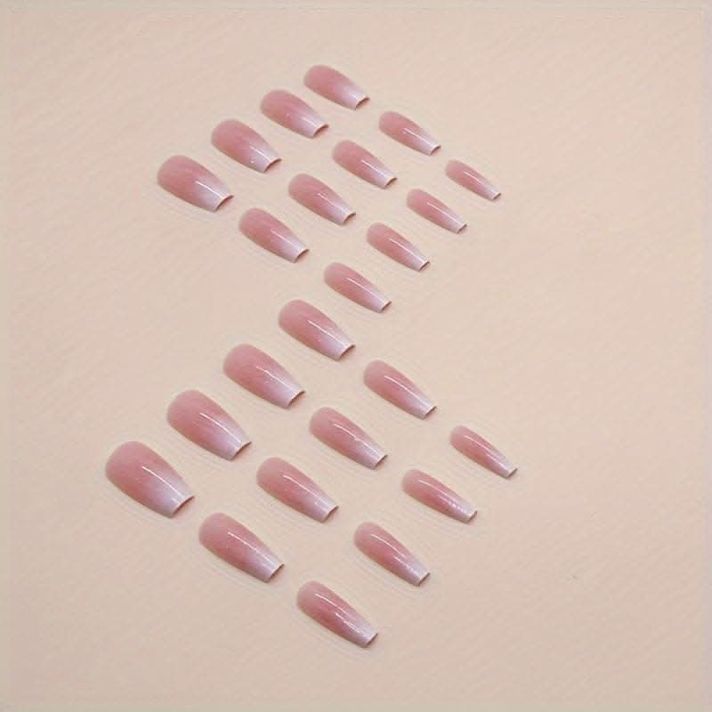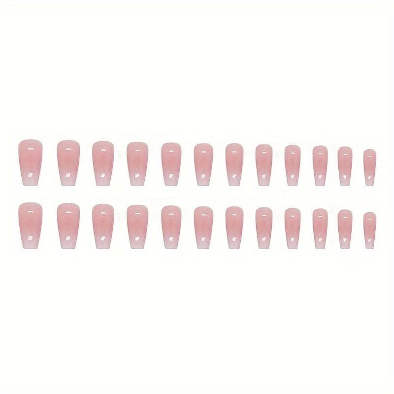 Elevate your manicure with these 24pcs glossy pinkish press-on nails. Featuring a long square shape and elegant glitter finish, they offer a chic and stylish look that's perfect for any occasion.