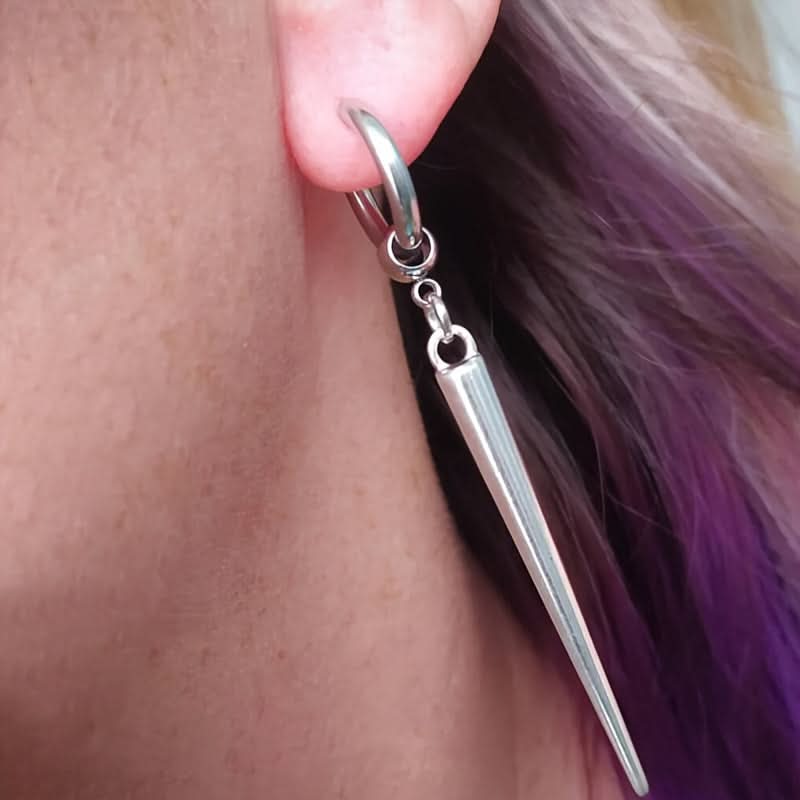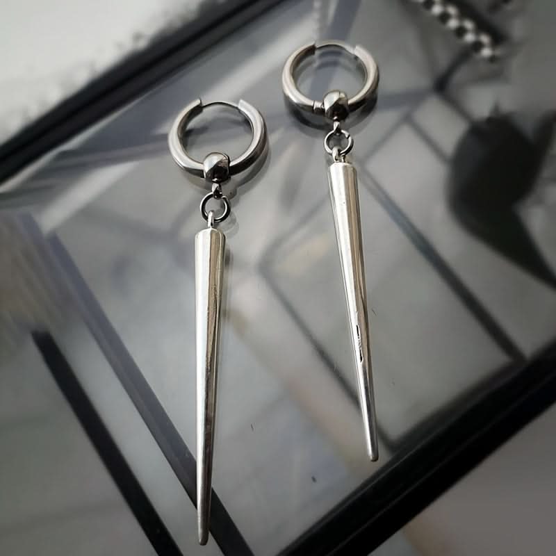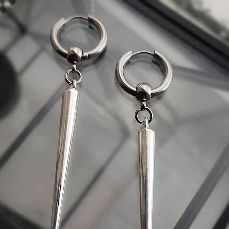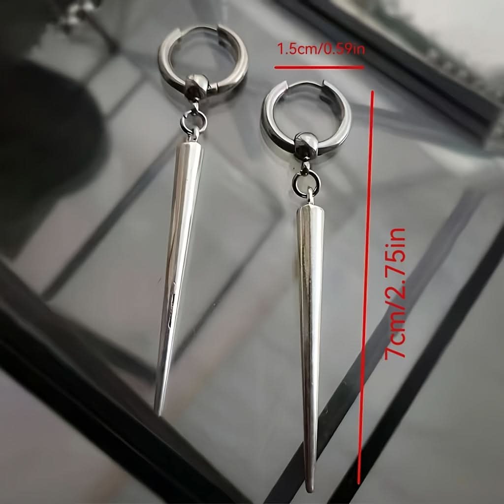 The long, dangle design embodies the rebellious spirit of punk rock style, making these earrings a versatile accessory for concerts, casual outings, or adding a touch of drama to your everyday look. Their lightweight construction ensures all-day wear without discomfort, while the white K plating enhances durability and prevents tarnishing.