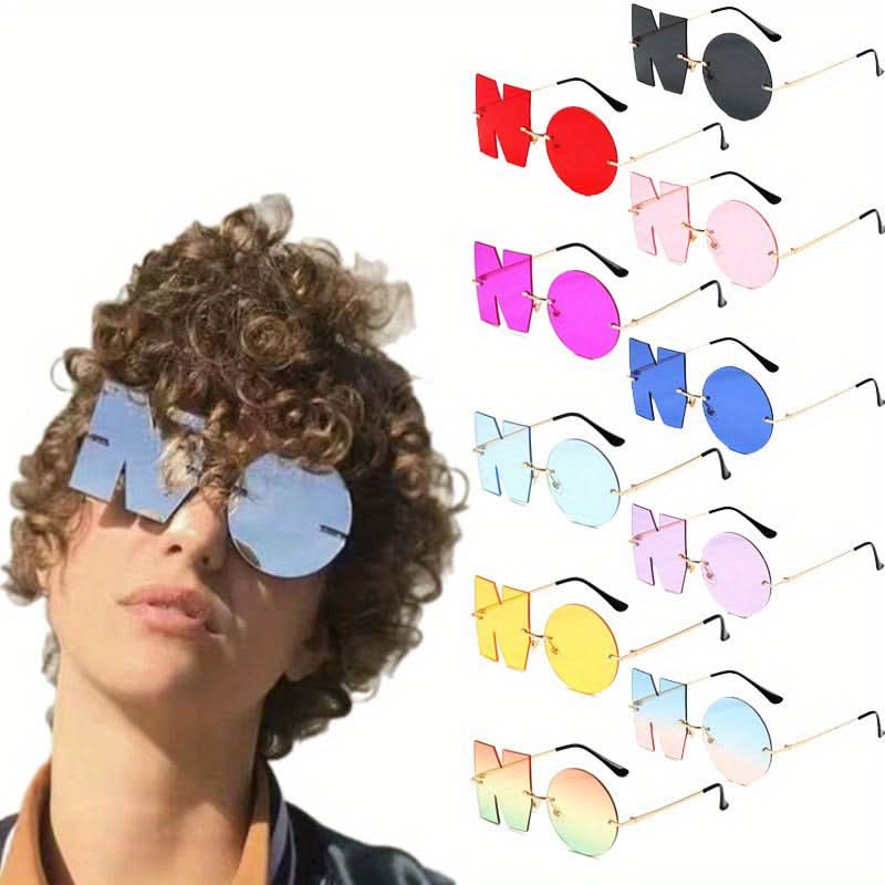 Add a touch of personality to your look with these 2pcs Irregular "NO" Rimless Eyeglasses. Featuring a unique wave design, these glasses are the perfect stylish accessory for parties, proms, or any fashion-forward event. Crafted with durable metal frames and polycarbonate lenses, they provide a sleek, lightweight feel while offering anti-reflective protection for clear vision. The "NO" lettering adds a bold statement, making them stand out as a fun and trendy fashion piece. Whether you're aiming to make a statement or simply elevate your outfit, these rimless eyeglasses combine artistic flair with everyday functionality. Perfect for those who love to stand out with distinctive accessories, these glasses are a must-have for any trendsetter.