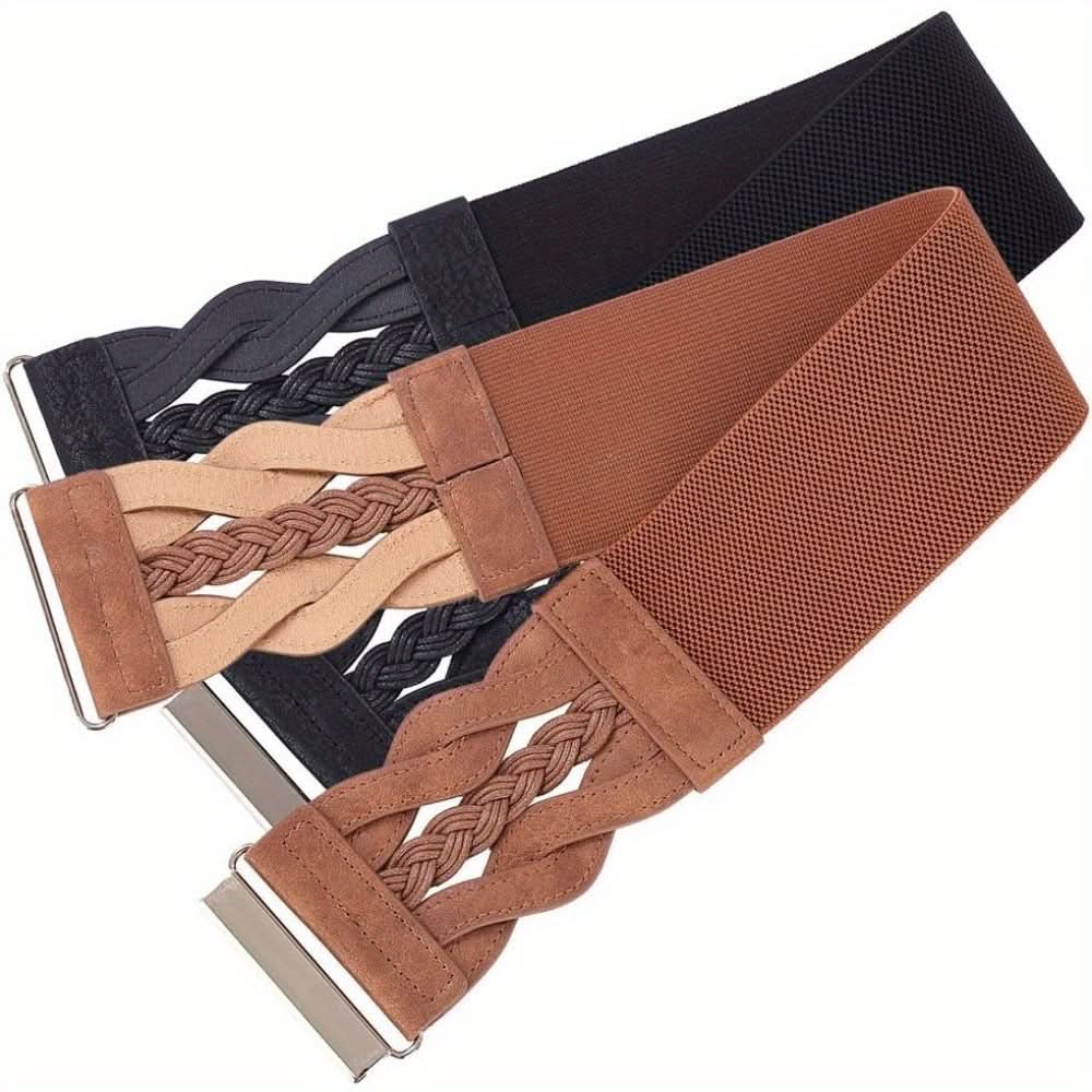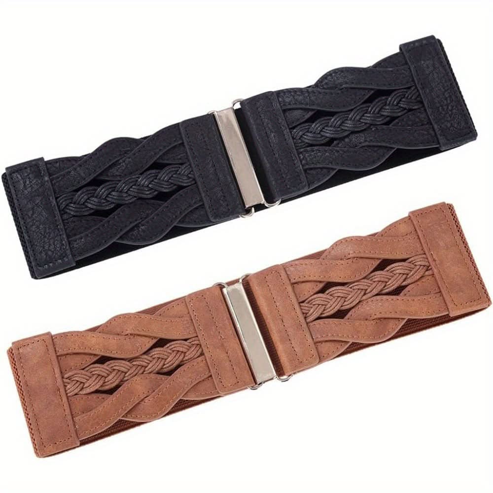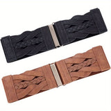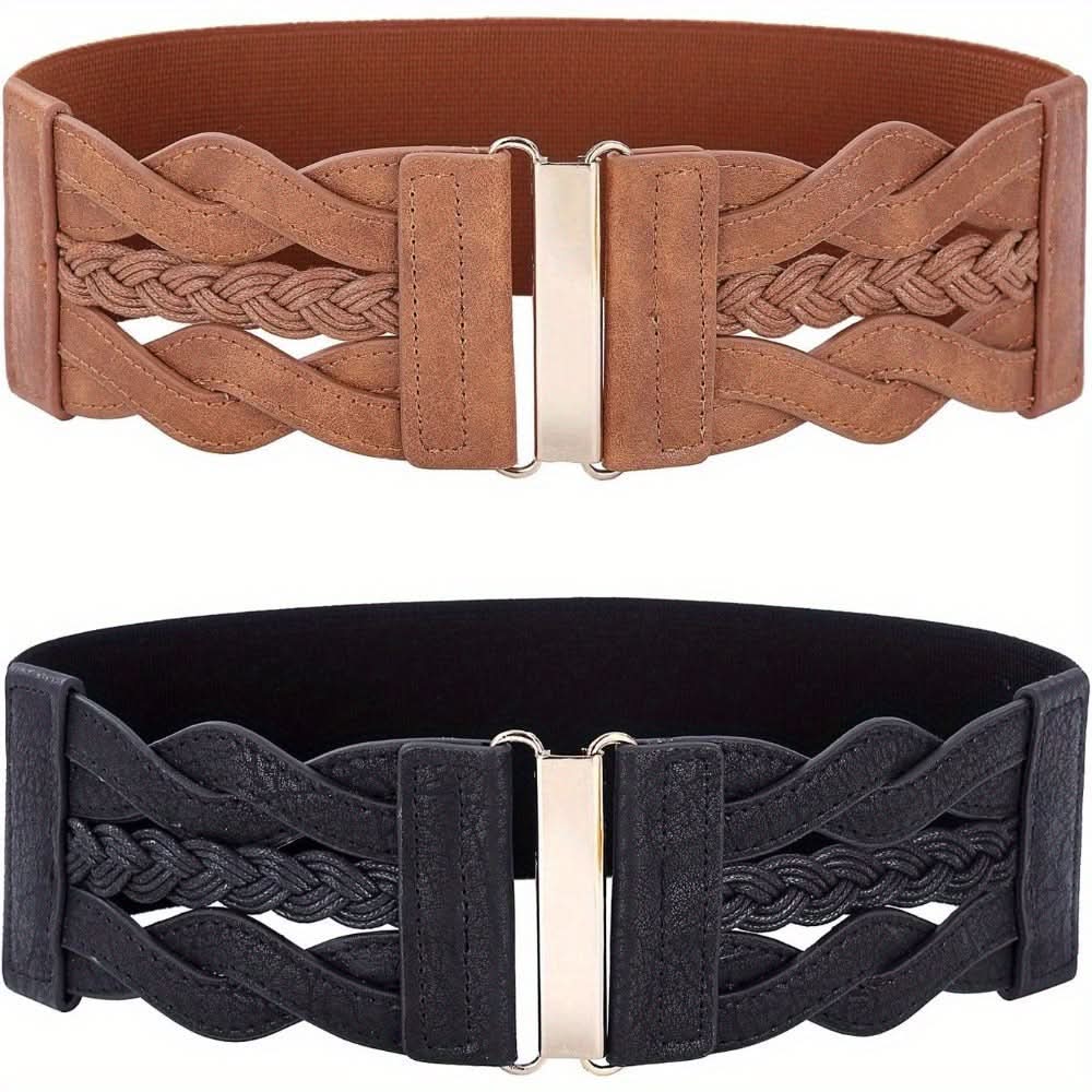 Add a touch of retro charm to your outfits with this set of 2 Vintage Braided Elastic Wide Belts. Designed for weekend casual wear, these belts feature a stretchy, braided design that comfortably fits average sizes, offering a flattering cinched waist for dresses and tops. Crafted from durable, flexible material, the belts are perfect for creating a stylish silhouette while providing comfort throughout the day. Their vintage-inspired look makes them a versatile accessory, whether you're dressing up for a casual outing or enhancing a more formal ensemble. Easy to wear and adjust, these belts are a must-have addition to your wardrobe for both style and functionality. Hand wash or professional dry clean for easy maintenance and lasting use.
