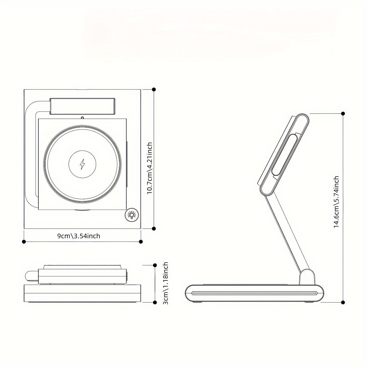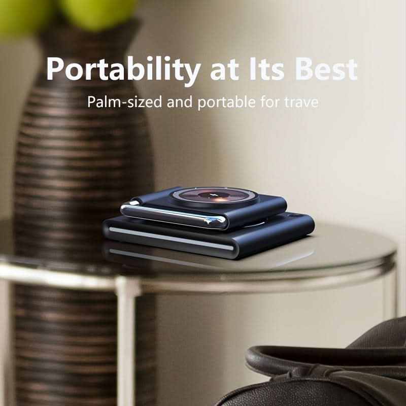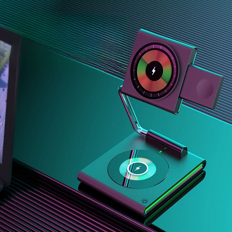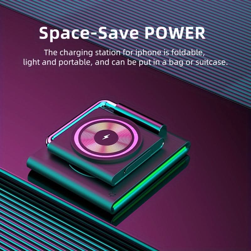 Streamline your charging routine with this 3-in-1 Foldable Magnetic Wireless Charger Dock, designed for simultaneous charging of your phone, earbuds, and smartwatch. Compact and portable, it folds easily, making it ideal for travel or on-the-go use. Featuring a magnetic alignment and USB power mode, this charger ensures a secure connection for each device while delivering a fast and efficient charge with up to 15W output for phones. The electroplated rotating structure and dazzling color breathing light add a modern touch to your setup, creating a convenient and stylish charging experience. Simply plug and play—no need for multiple cables. This all-in-one solution is compatible with most wireless-enabled devices, providing a clutter-free charging experience perfect for home, office, or travel.