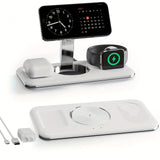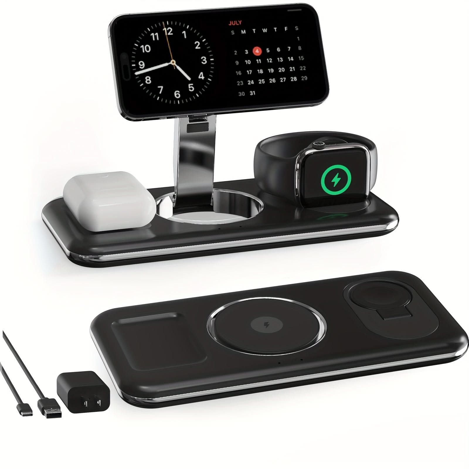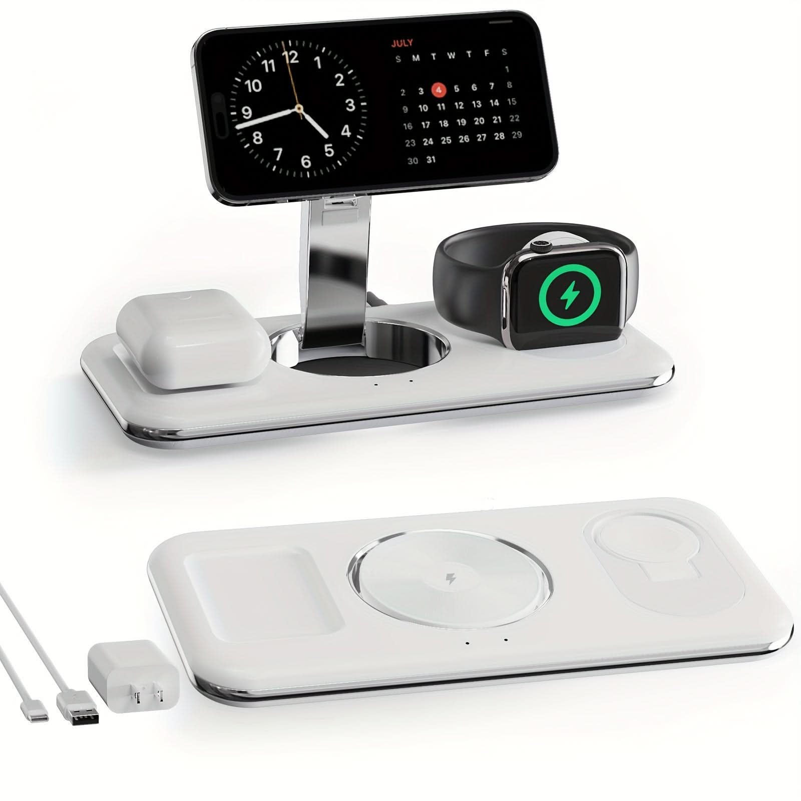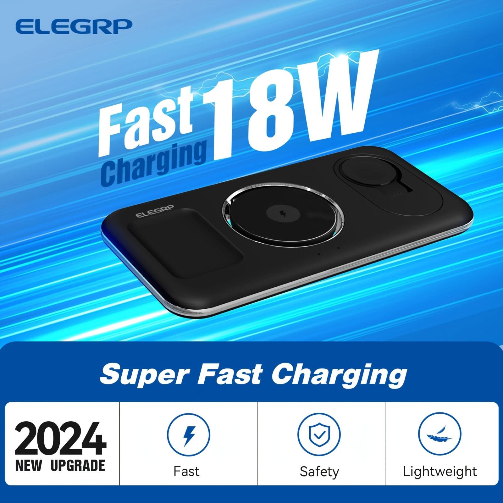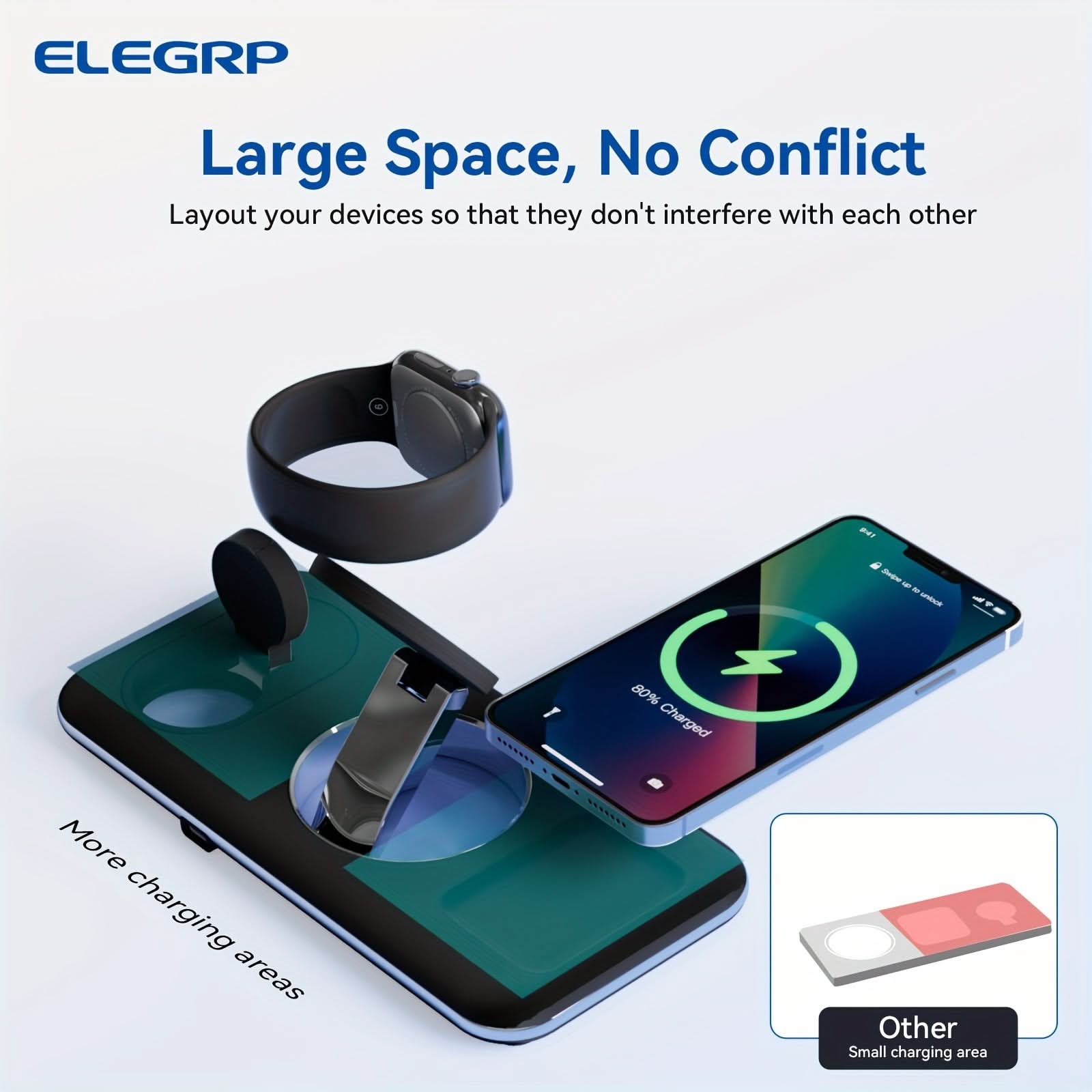 Charge all your Apple essentials effortlessly with the ELEGRP 3-in-1 MagSafe Wireless Charging Station. Designed for iPhone models 15 through 12, Apple Watch Series Ultra, 8, SE, and AirPods 2/3/Pro, this sleek station combines style with functionality. Its magnetic alignment ensures a secure fit, while the fast-charging capabilities quickly power up your devices, keeping you ready for the day ahead. The compact, all-in-one design reduces clutter and adds a modern touch to any space, making it ideal for nightstands or work desks. Equipped with a USB Type-A connection and powered by a standard US plug, it’s perfect for both home and travel. Enjoy seamless, organized charging for all your favorite Apple devices with this efficient charging solution.