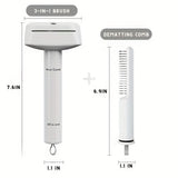 Effortlessly tackle your pet's grooming needs with this 3-in-1 pet grooming comb, designed for shedding, dematting, and undercoat care. This versatile tool features dual stainless steel sides to effectively remove tangles, mats, and unwanted fur while being gentle on your pet’s skin.