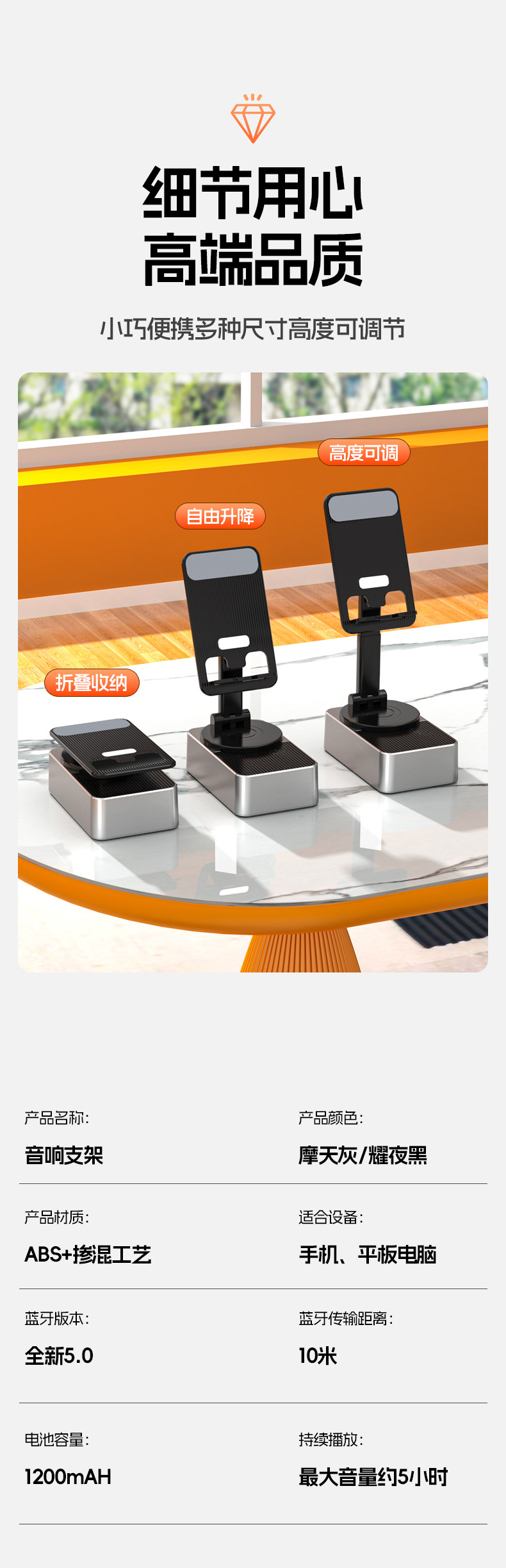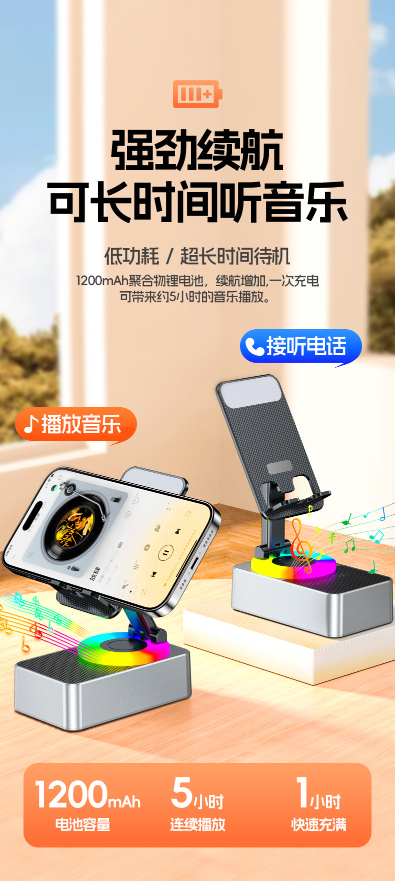 This 3-in-1 Mobile Phone Stand with Bluetooth Speaker and Power Bank is your ultimate on-the-go companion. Designed for versatility, it features a 360-degree rotatable and foldable stand, so you can enjoy hands-free viewing at any angle. The built-in Bluetooth speaker delivers impressive heavy bass for rich, clear sound, perfect for music or calls, and supports MP3 and WMA formats for wide compatibility. With a 1500mAh battery capacity, it doubles as a power bank, giving your phone a quick boost when you’re on the move. Available in sleek black and grey, this compact stand fits effortlessly into your bag, ready for any adventure. Recharge in just two hours and enjoy 3-8 hours of playback. Elevate your experience with this stylish, multifunctional accessory.