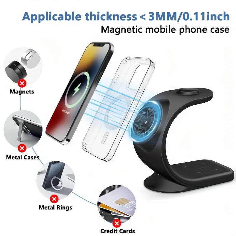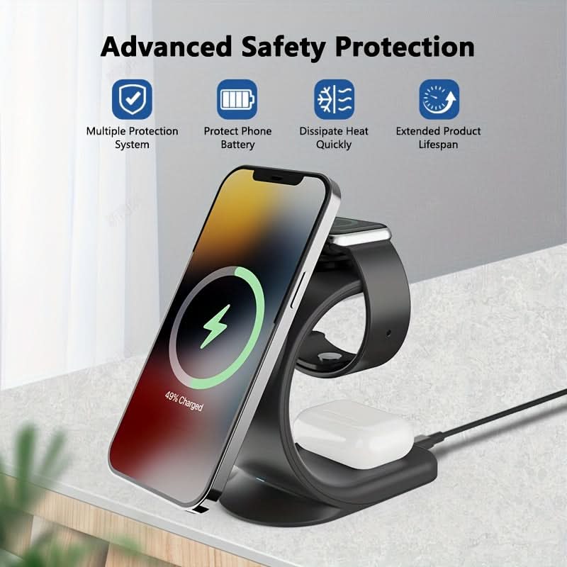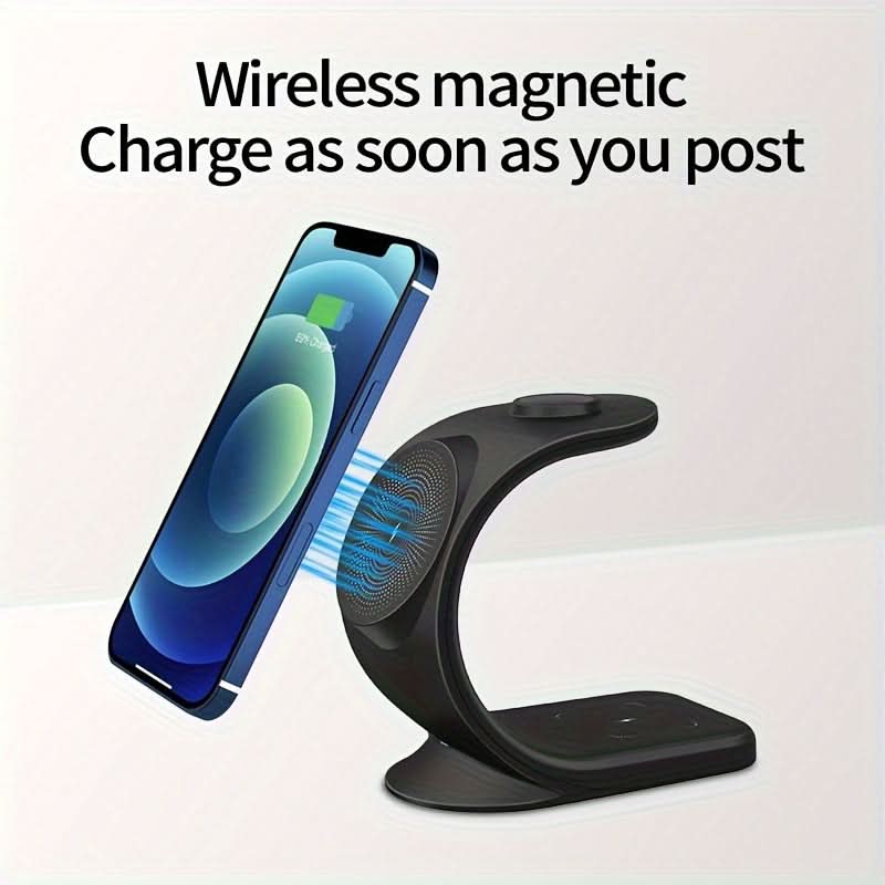 Power up your devices in one convenient spot with the 3-in-1 Wireless Charging Station. Designed for iPhone 15/14/13/12 Pro Max, Apple Watch Ultra/9/8/7/6/5/4/3/2, and Air Pods Pro2/Pro/3, this charging dock combines fast charging capabilities with a sleek magnetic design. Enjoy a clutter-free space with this space-saving station that delivers rapid, efficient power to your devices simultaneously. Whether you're charging your iPhone, Apple Watch, or Air Pods, the station ensures a safe, stable connection with overcharge protection. Perfect for home or office use, it’s the ultimate solution for all your wireless charging needs. Keep your devices powered and ready with the convenience of fast charging, every day!