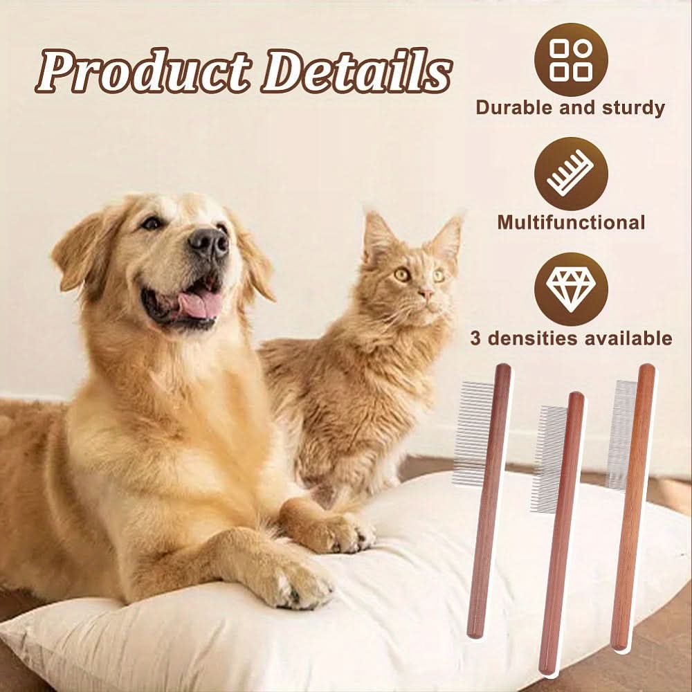 Keep your pet looking their best with this 3-piece Pet Detangling Comb Set, crafted for efficient grooming and detangling. Each comb features fine teeth and soft, comfortable wooden handles, offering a gentle yet effective grooming experience for dogs and cats. Perfect for removing knots, tangles, and loose fur, these combs ensure a smooth and healthy coat. Designed with durability in mind, the stainless steel teeth glide through fur effortlessly, while the ergonomic wooden handles provide a secure and comfortable grip. Suitable for pets of all coat types, this versatile set includes mixed styles to cater to various grooming needs. Whether you’re tackling tough tangles or providing daily care, this comb set is an essential addition to your pet grooming routine. Easy to use and built to last, it’s the perfect tool for keeping your furry friends happy and well-groomed.