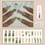 Bring elegance and nature-inspired charm to your nails with these 3D Floral Square Press-On Nails. Featuring a long square shape, the set showcases a green-to-nude gradient with delicate floral and swirl designs, enhanced with diamond-like embellishments for a sparkling, sophisticated look. The transparent tips add depth and highlight the intricate 3D detailing, creating a unique manicure that stands out. Made from high-quality acrylic, these glue-on nails are durable, lightweight, and easy to apply, giving you a salon-quality finish in minutes. Sourced from Worldwide Suppliers, this set brings international nail trends to your fingertips, combining style, convenience, and creativity. Multiple sizes ensure a perfect, natural fit for every nail, allowing you to achieve flawless, eye-catching results effortlessly.