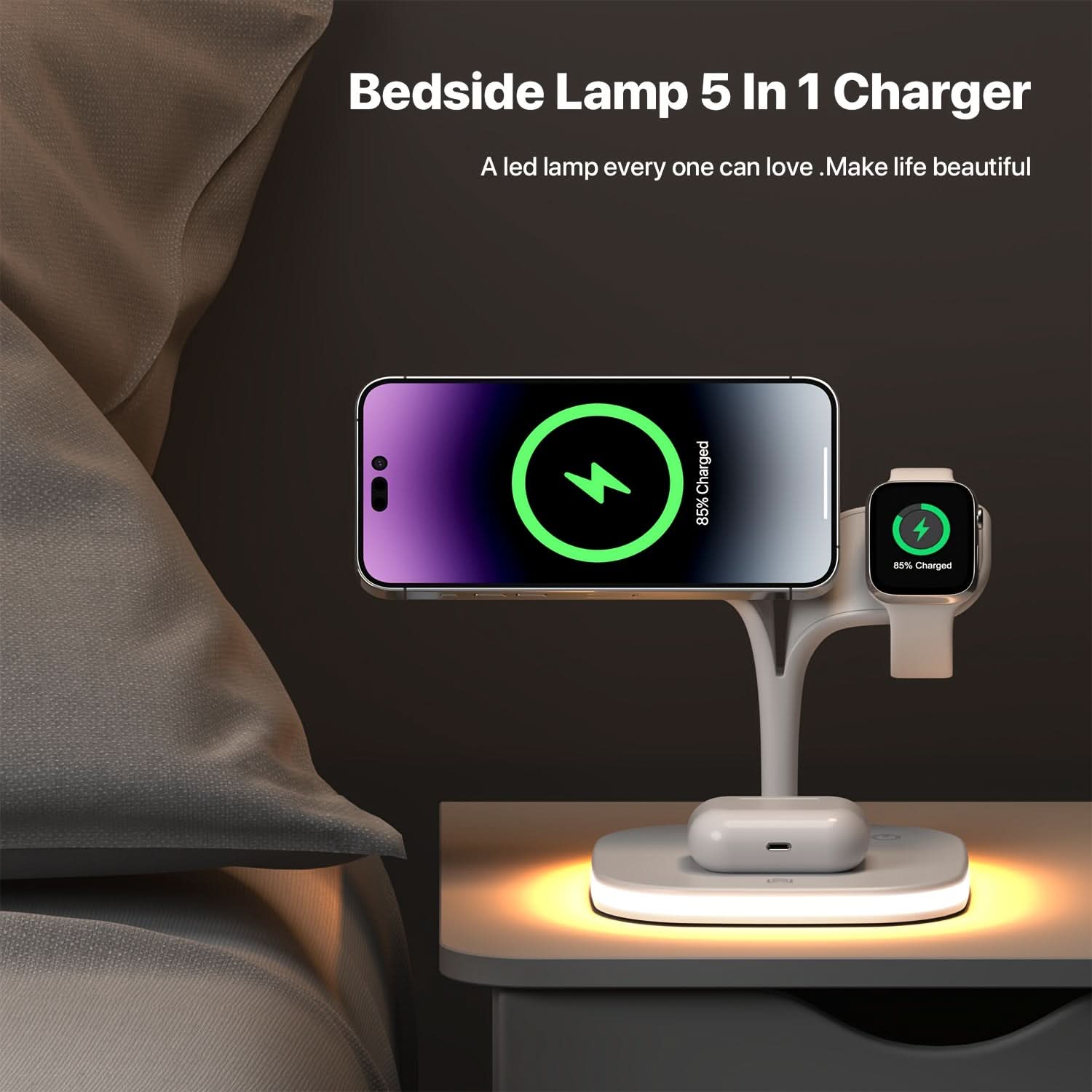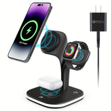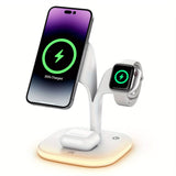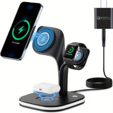 Upgrade your charging setup with this sleek 4-in-1 magnetic wireless charger dock, designed for seamless compatibility with iPhone 15/14/13/12 Pro/Max/Plus, AirPods, and Apple Watch Series 2-9/Ultra. Featuring a powerful magnetic connection, this charging station ensures secure, stable charging without the hassle of tangled cords. Its built-in night light adds convenience, making it perfect for bedside use. The wireless functionality allows you to charge multiple devices simultaneously, cutting down on clutter and keeping your space organized. With USB power and ≤36V operating voltage, it's safe, efficient, and easy to use. Whether you're at home or the office, this charger dock delivers fast, reliable power for all your essential devices. Simplify your life with this all-in-one charging solution!