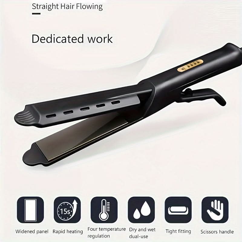 Achieve sleek, smooth hair or gorgeous curls with the 4-Speed Hair Straightener & Curler – the ultimate dual-purpose flat iron for women. Designed for versatility, this professional hair styling tool offers precise temperature control to suit your hair type and desired style. The ion technology helps reduce frizz and static, leaving you with a shiny, polished finish. With its 4-speed settings, you can customize your styling experience for everything from straightening to curling. Perfect for everyday use or special occasions, this plug-powered straightener operates at 110V, ensuring powerful performance with minimal effort. Whether you’re gifting it for Mother’s Day or just treating yourself, this hair straightener and curler is a must-have addition to any beauty routine. Its sleek design and fast heat-up time make it ideal for busy mornings or styling on the go.