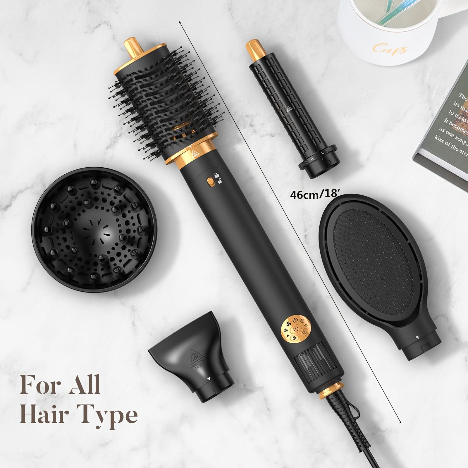 Transform your hair routine with the 5-in-1 Professional Hot Air Brush Set, designed to give you salon-quality results at home. Whether you're curling, straightening, or simply drying and styling, this versatile tool does it all. Powered by USB, it's perfect for on-the-go use, and its 1400W motor ensures fast, efficient styling. The detachable, interchangeable brush heads allow you to switch up your look with ease, making it ideal for all hair types and styles. Say goodbye to cluttered drawers and hello to this all-in-one solution that combines convenience, power, and performance. Lightweight and easy to handle, it’s your new go-to tool for effortless, everyday hair styling. Perfect for quick touch-ups or full styling sessions!