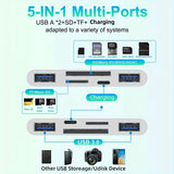 Introducing the 5-in-1 Ultra-Portable Multi-Card Reader Hub, your essential companion for seamless data transfer and connectivity. Designed for convenience, this sleek and lightweight card reader supports various formats, making it compatible with SD, microSD, and USB devices. Whether you're a photographer needing quick access to your camera's memory or a professional transferring files on the go, this versatile hub has you covered.