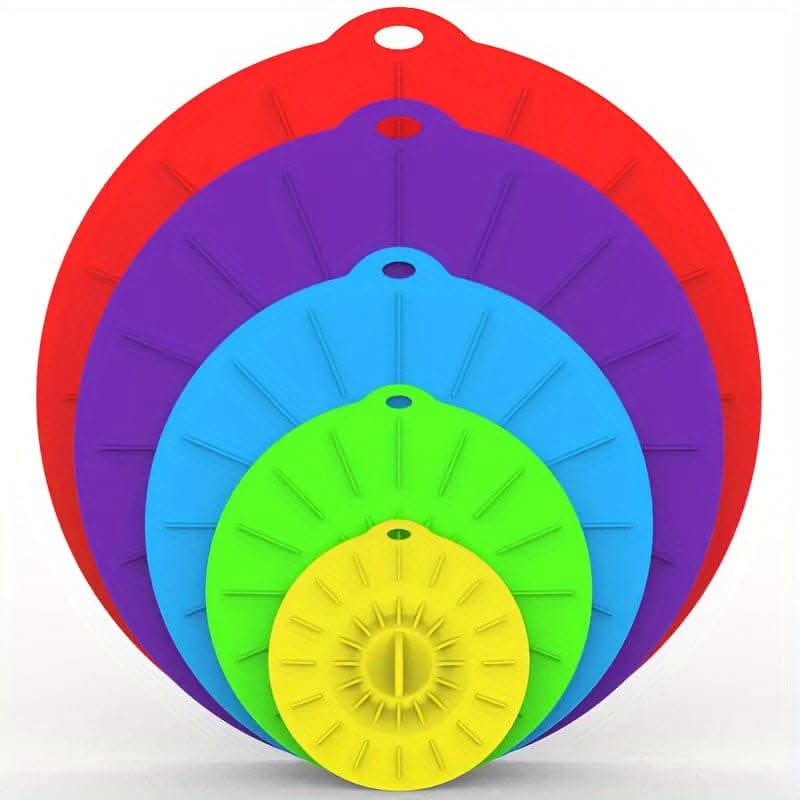 This 5-piece silicone bowl lids set is perfect for your kitchen needs. Featuring various sizes, these heat-resistant and reusable lids fit bowls, cups, plates, pots, and pans. Ideal as microwave splatter covers and stovetop protectors, they make a practical and thoughtful gift.