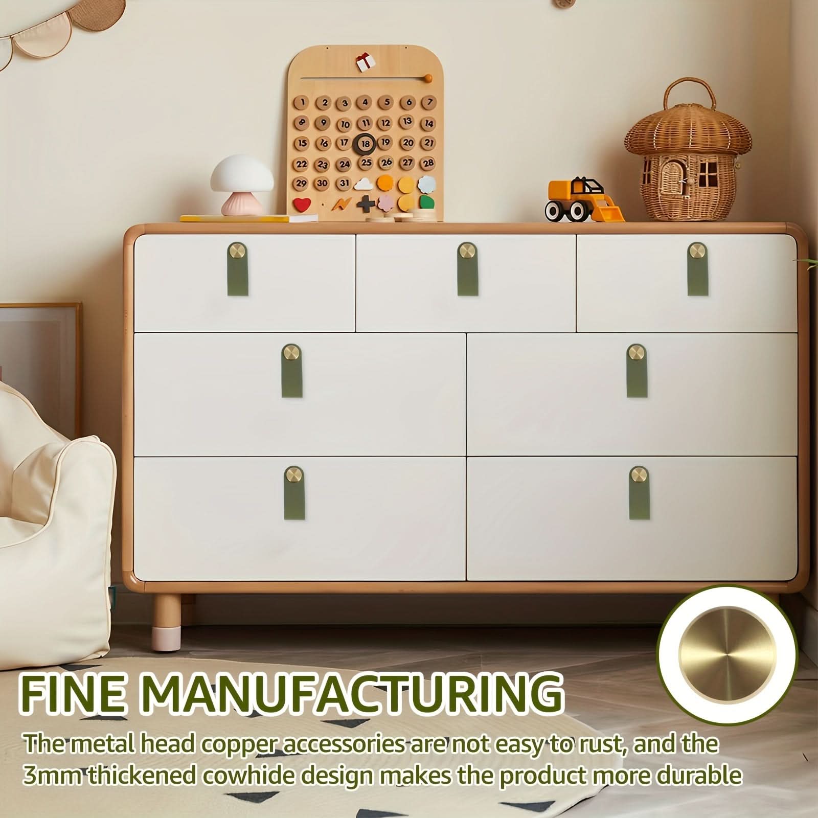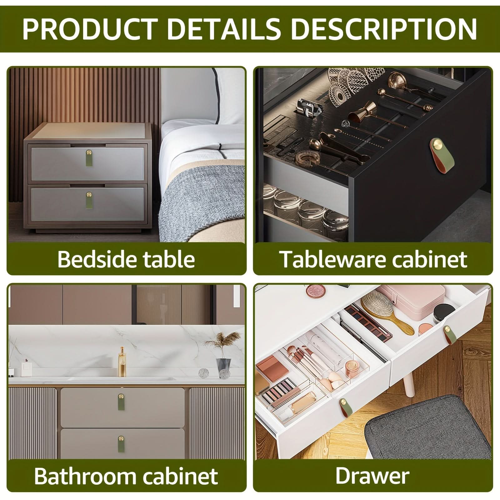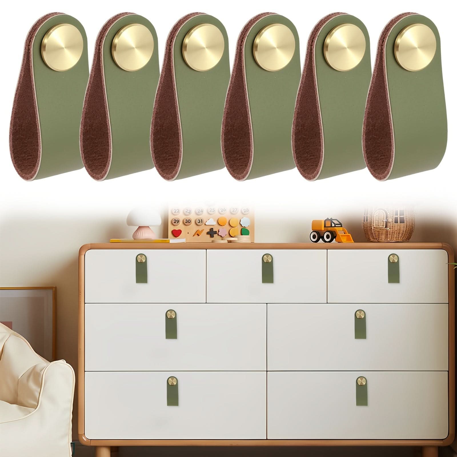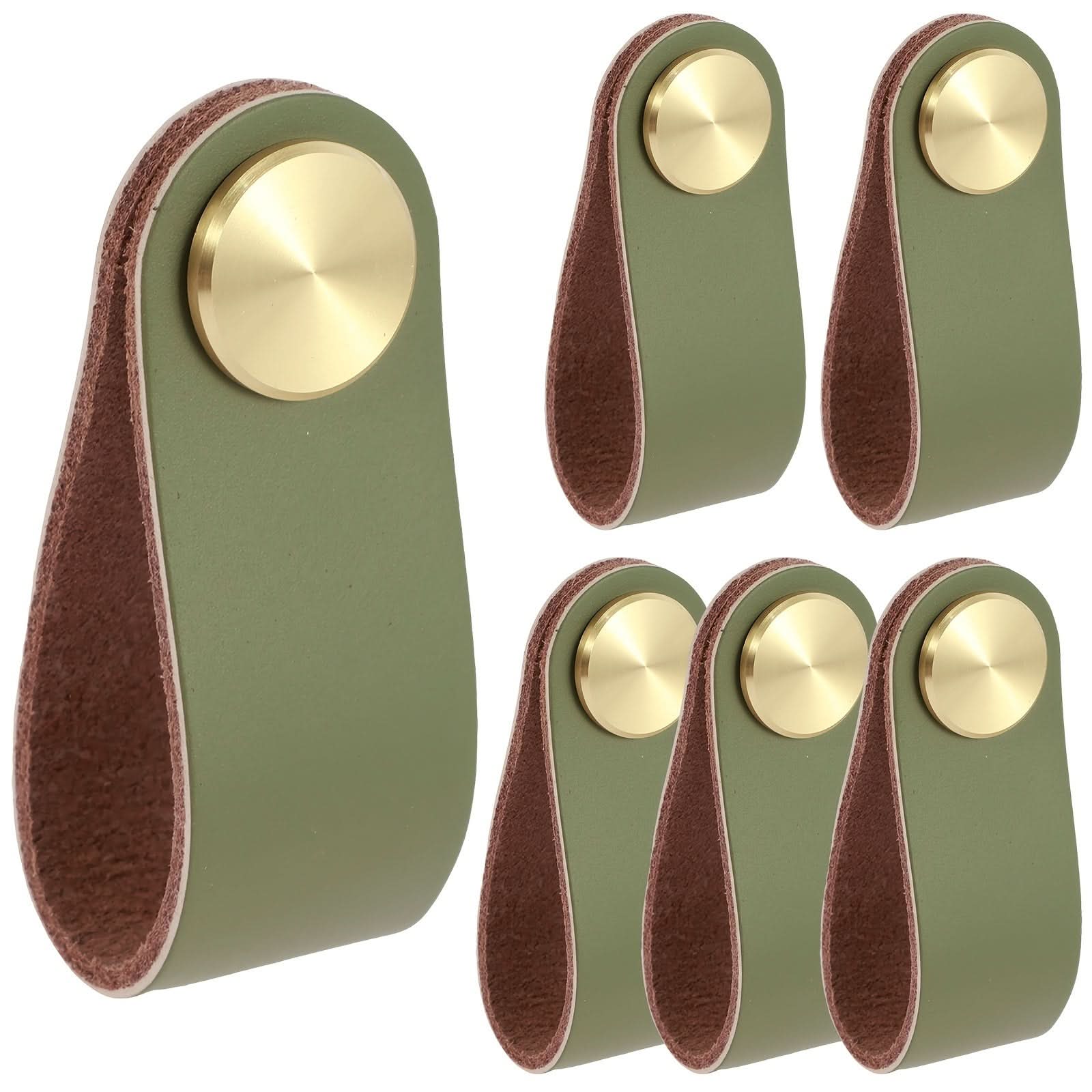 Upgrade your furniture with these 6-pack leather drawer pulls, a perfect blend of style and durability. Made from thickened leather and accented with brass hardware, these handles add a touch of modern elegance to kitchen cabinets, bathroom drawers, wardrobes, and more.