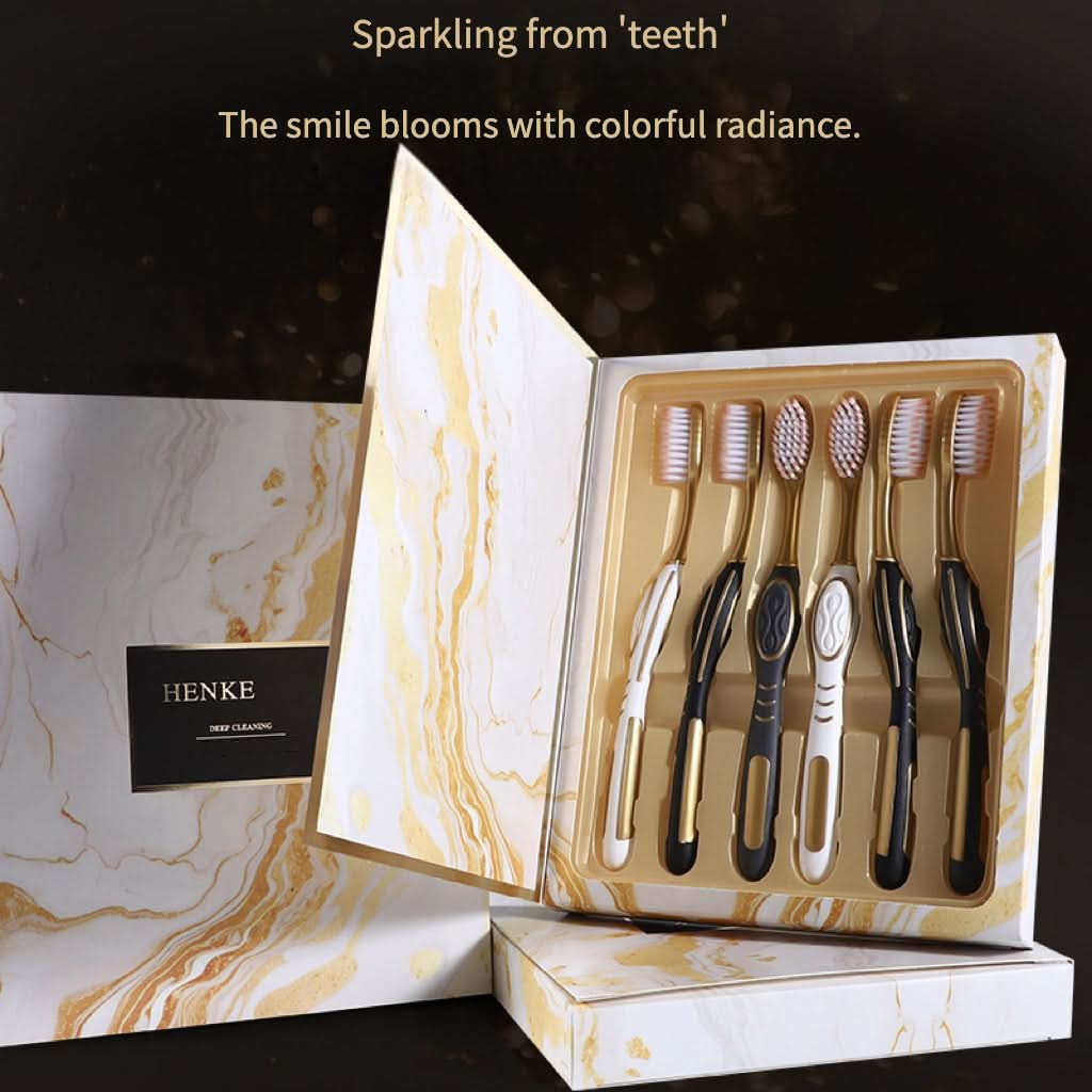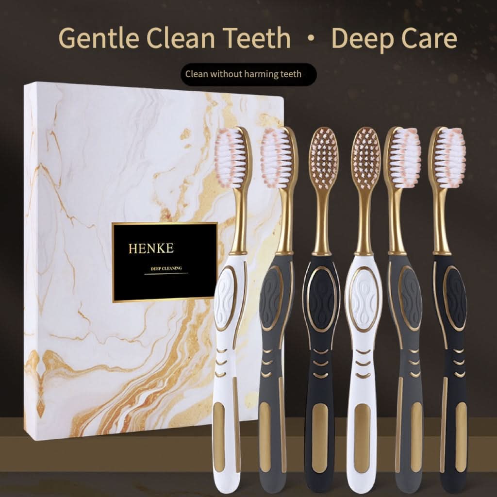 Upgrade your oral care routine with this luxurious 6-piece soft bristle toothbrush set, designed for deep cleaning and optimal gum care. Each toothbrush features a full-sized head with medium firmness, providing effective plaque removal while being gentle on your gums. Perfect for daily use, these manual toothbrushes offer a comfortable grip and precise control, making them ideal for adults looking to maintain healthy teeth and gums. Whether you're at home or on the go, this set makes a thoughtful, practical gift for anyone who values their oral hygiene. Keep your smile clean and bright with this premium toothbrush set.